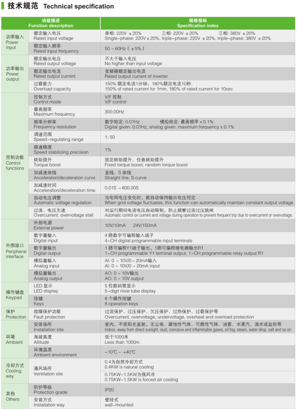 ◎ 體積相對于同行業(yè)變頻器節省15%左右空間;